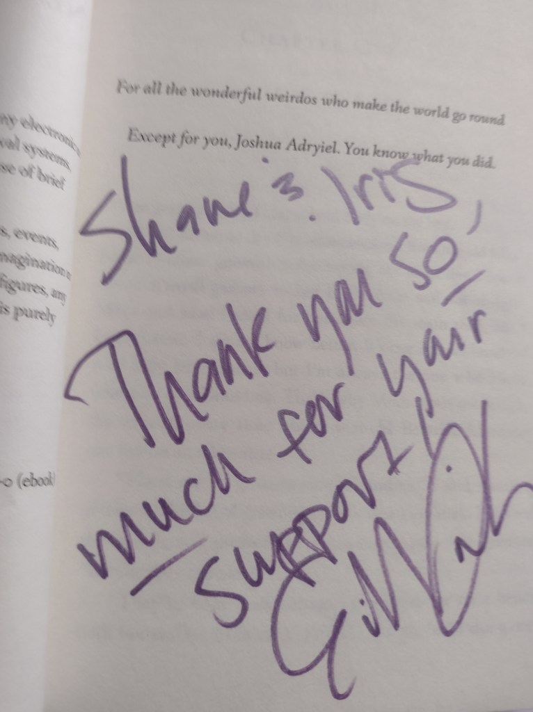 This afternoon was hot as hell again. Didn’t deter my from going to the Bliss books and binary to attend my first meet and greet with author E. M. Chaffin, I certainly will be leaving a review